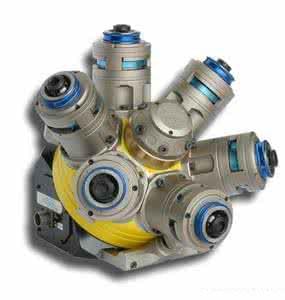 转塔主轴头换刀方式也需要配备转塔,但转塔主轴上连接的不是刀架,而是多个不同方位,成章鱼触手状分布的分主轴头,每个主轴头上事先安装有各个工序需要使用的刀具。工作中,通过旋转转塔,各主轴头按照程序指令,依次转动到加工位置,从而实现自动换刀动作。这种换刀方式,由于各分主轴都集中在一个转塔上,对转塔主轴的刚度有较高的要求,刀具主轴的数量也有所限制。转塔主轴头换刀方式主要应用在小型立式加工中心。