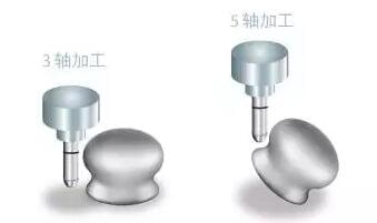 五轴数控加工中心在加工工件侧面时,刀具长度要远远短于三轴加工中心的长度,使刚性和加工精度得以大幅提高。