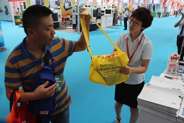 我说:阿姨您等等,看你拎着这么多样本也挺重的,给你个我们的宣传包吧,挎着省力(我们的宣传包是专门设计的一种可以跨在肩膀上的)