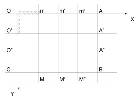 639cc全民彩 首先获取待刮研面上多个点的坐标,并将这多个点的横坐标和纵坐标分别记录在矩阵A、矩阵B中。获取这多个点时,可以采用网格法来获取。网格法获取多个点时如图2所示, 基准平面由两条直线OmX 和 OO’Y 确定,直线 OX 和 OY 最好选择成互相垂直的两条线,并分 别平行于待刮研面的轮廓边。测量时先测量 OA 和 OC 每条线的轮廓,再测量 O’A’、O’’A’’ 和 CB 纵向线的轮廓,以便覆盖整个待刮研面,测量完毕后可沿 mM、m’M 等作追加测量,以进 一步证实上述测量。当待刮研面的宽度与其长度不相称时,可同时沿对角线测量,即所谓的 交叉检查。测量时可采用精密水平仪进行测量。
