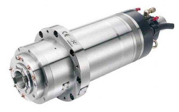 电动机与主轴一体化的主轴目前最为常用。这种类型的主轴通常也称电主轴,电动机本身就是主轴。这种主传动方式大大简化了主轴箱体与主轴的结构,提高了主轴部件的刚度,但主轴输出扭矩小,电动机发热对主轴影响较大。数控磨床的许多主轴都是采用这种方式,速度可以达到数万转每分钟,一般这种主轴电动机都采用循环水冷却系统进行冷却。